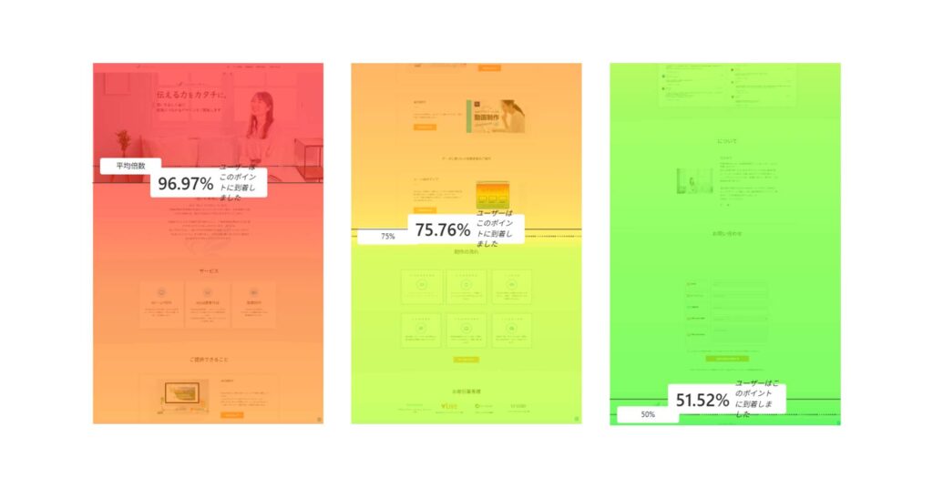 ユーザーがどこまでスクロールして離脱しているかを分析することで、読まれずに離脱されやすい部分を改善できます。不要な情報を整理し、必要な情報を適切な位置に配置することが可能です。