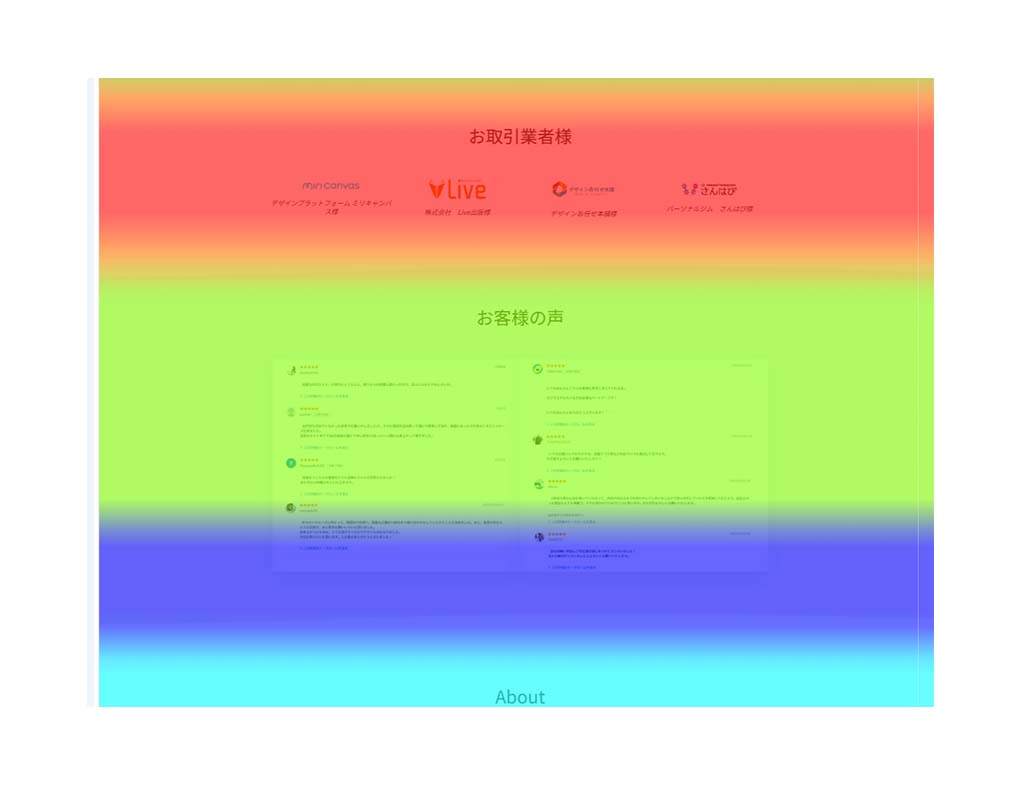 ページ上で「どこがよく見られているのか」「どの部分に目が止まっていないのか」を色で把握できます。これにより、強調すべき情報や改善すべき箇所が明確になります。
